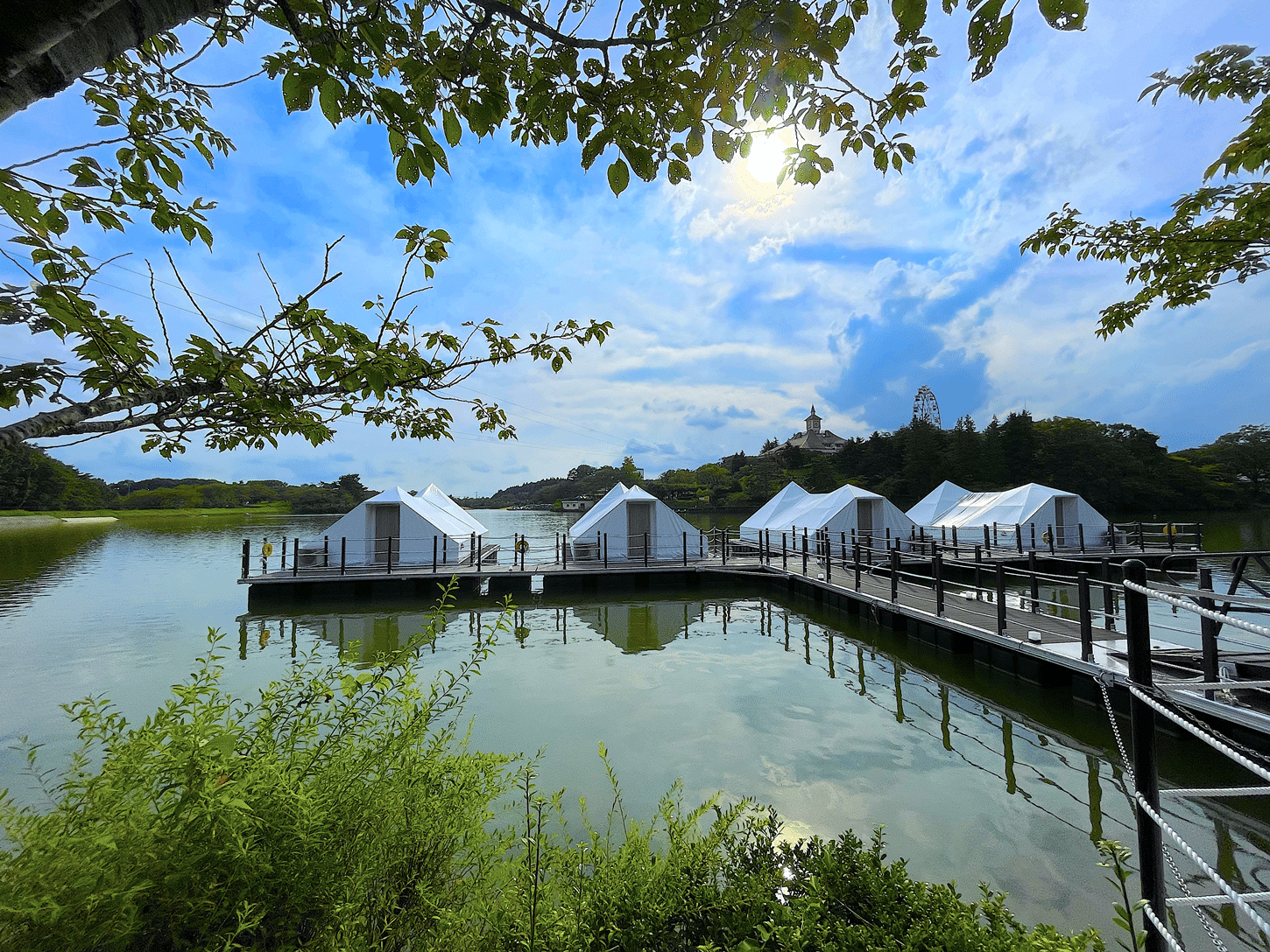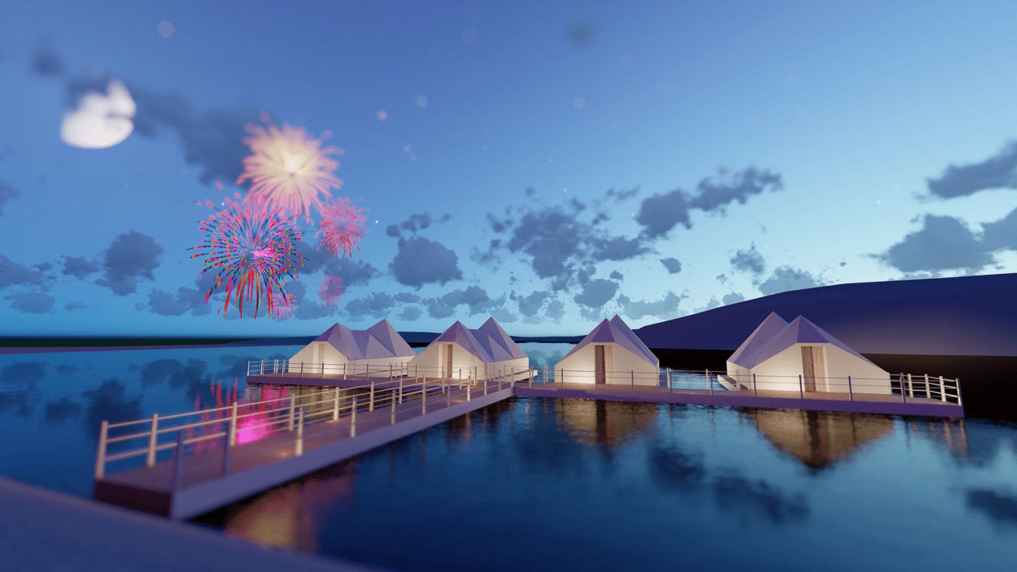 Floating tents can be used as water glamping, villas, etc. We design the structure of tents which are calculated by the weight and buoyancy of the building. Compared to piling above the water to make the artificial ground, the architectural design, which allows the building to float such as a ship leads to significant cost reductions while creating the ultimate space to enjoy.