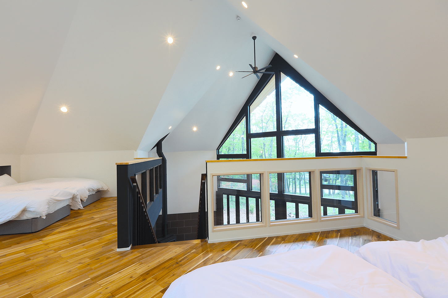 A spacious room is hard to make with wooden frame structures, however, our method creates a spacious space by using the jagged shape of the outer wooden line. We provide architectural designs that are created from structural design which balances design and functionality.